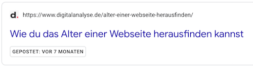 Wenn es nicht in den Suchresultaten angezeigt wird, steht es idR auch im WordPress-Beitrag. Wann eine Seite veröffentlicht wurde, kannst du im Quelltext herausfinden. In Chrome geht es über die rechte Maustaste und Untersuchen. Suche dann über Bearbeiten > Suchen > Suchen nach folgender Zeile (Bsp.):