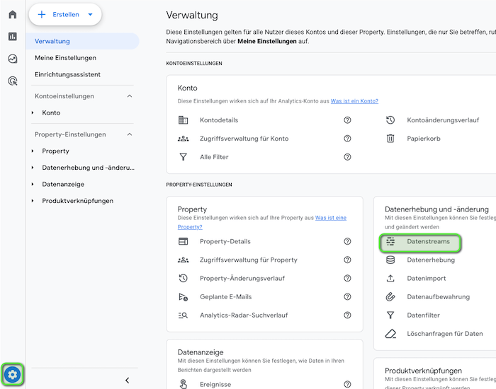 Um die eigene IP-Adresse herauszufiltern, geht ihr links unten auf Verwaltung und dann rechts auf Datenstreams und wählt ihn aus.