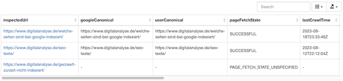 | pageFetchState | Seite ist indexiert oder nicht |